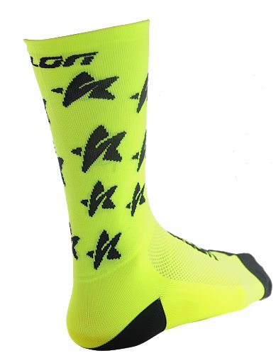 MEIA VELON AMARELO FLUOR C/ESTRELAS PRETAS